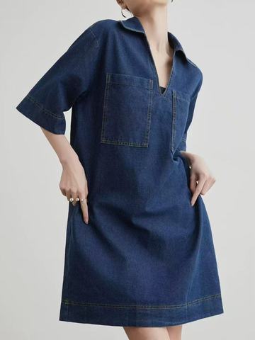 Fabricación Personalización Camisa de manga corta de alta calidad Vestido de mezclilla Moda Vestido de mezclilla para mujer
